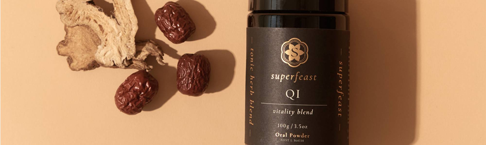 The SuperFeast QI blend is a beautifully crafted formula comprised of the most revered Qi tonics of the Taoist tradition. These are the herbs that have been used historically to tonify our metabolic fire so we can access greater daily energy and gain higher levels of vitality.