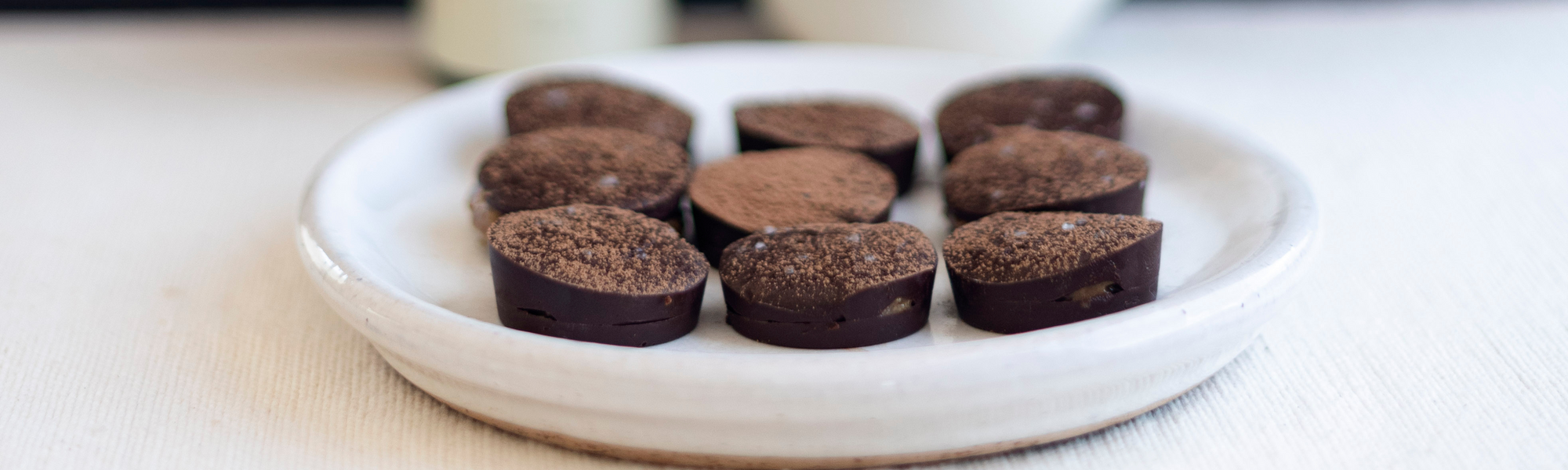 - Cover with the remaining chocolate and freeze or refrigerate before serving (sprinkle with some extra sea salt flakes for a yummy contrast or a powdering of cacao).