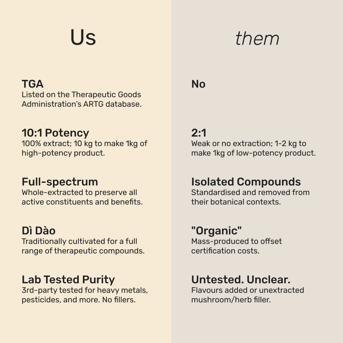 Schisandra is also dubbed ‘the five taste fruit’, for its rare ability to influence all five organ systems (Liver, Kidney, Heart, Lung & Spleen) through its five taste profiles (salty, sweet, sour, bitter, and pungent). Such comprehensiveness is said to allow this potent holistic tonic herb to regulate the entire system.