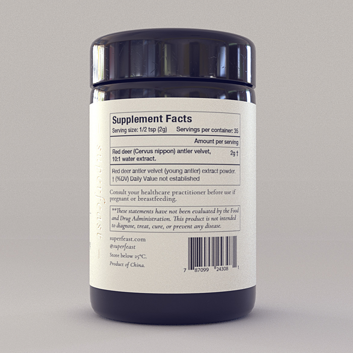 Start with 1⁄4 teaspoon of powdered Deer Antler extract, increasing to 1⁄2 teaspoon or more if desired.