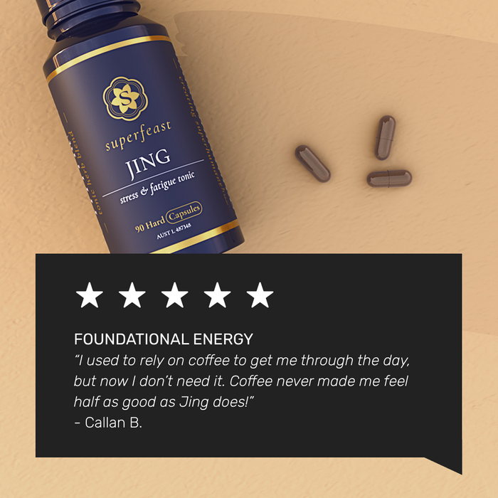 In Taoist philosophy, your ‘Jing’ is a primary foundational energy that governs your vitality, drive, and longevity. It’s one of the Three Taoist Treasures, and where our JING capsules get their name.