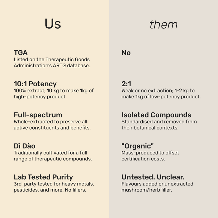 Working in synergy, these herbs and mushrooms are traditionally used to enhance energy levels, support adrenal function, promote endurance and stamina, bolster immunity, and act as an aphrodisiac to improve libido.